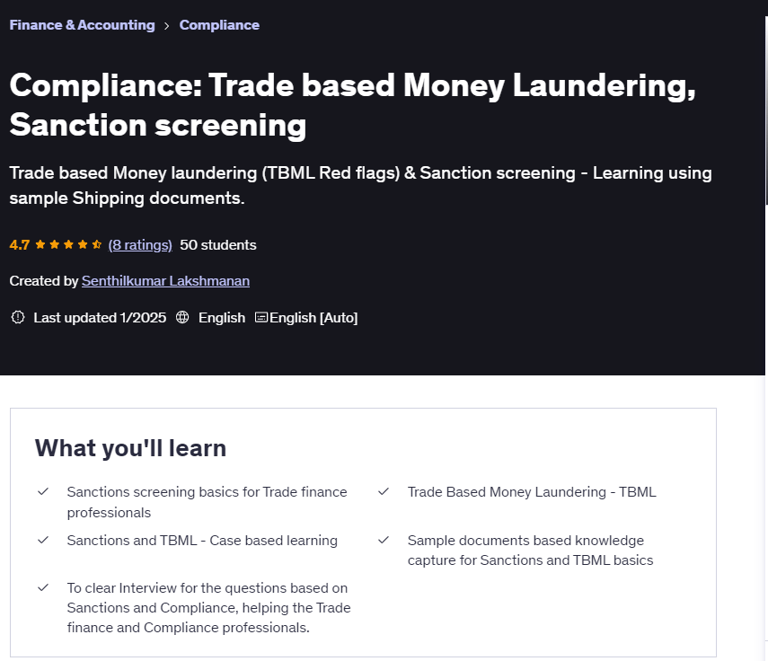 If you are a Trade finance professional or wanted to excel in Trade finance Compliance concepts.